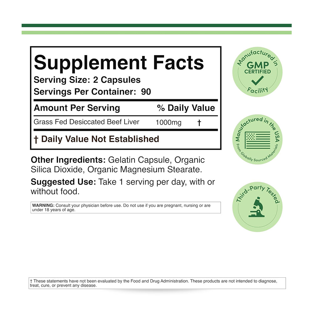 Hígado de Res, 180 caps